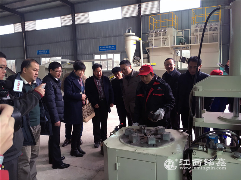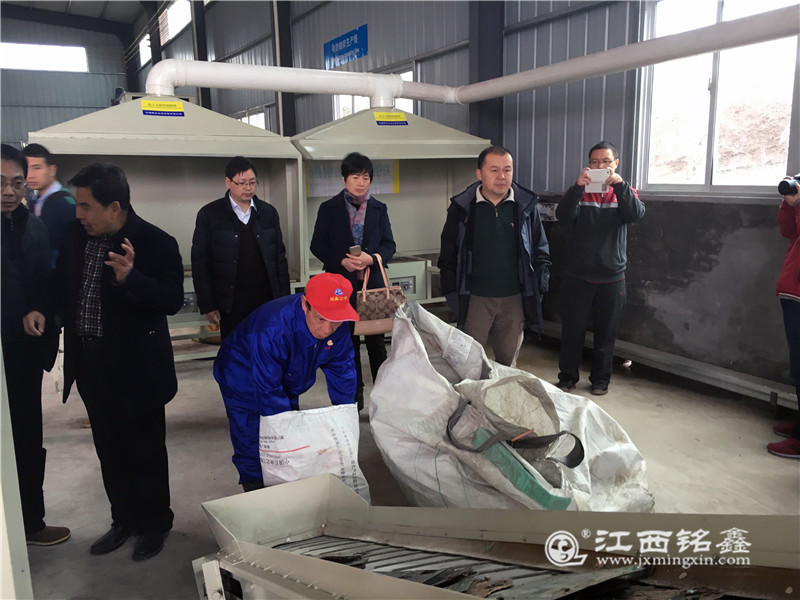 石城縣縣委常委宣傳部長劉群楷致歡迎辭,考察組領導和專家到生產現場考察.